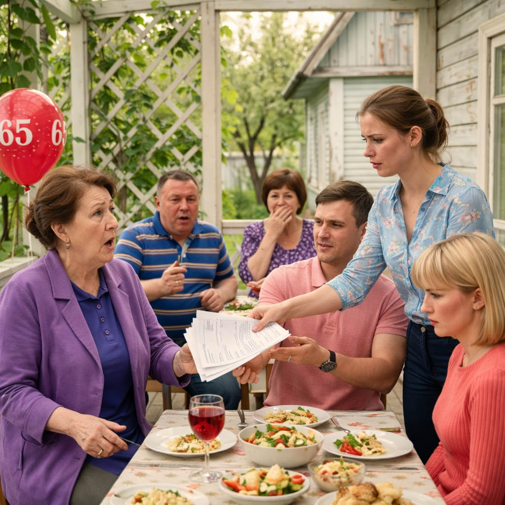 Дача Надежды Степановны гудела. На просторной веранде стоял длинный стол, уставленный тарелками с нарезкой и маринованными огурцами. Дядя Игорь, краснолицый и шумный, уже разливал по рюмкам крепкие напитки. Свекровь, в нарядной блузке с брошью, царственно принимала цветы.