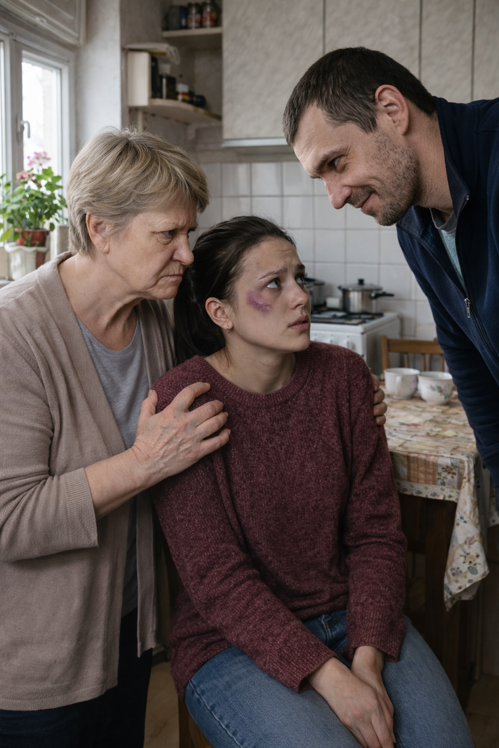 Оля стояла у раковины, отвернувшись к окну, и машинально одёргивала длинный рукав домашней кофты. На правой скуле темнел свежий синяк. Я заехала к ним без предупреждения — наготовила голубцов, положила в контейнеры и решила завезти по пути. Открыла дверь своим ключом и застала эту сцену. Вадим даже не изменил тон. Он всегда был таким — уверенным, что деньги и связи родителей дают ему право на всё.