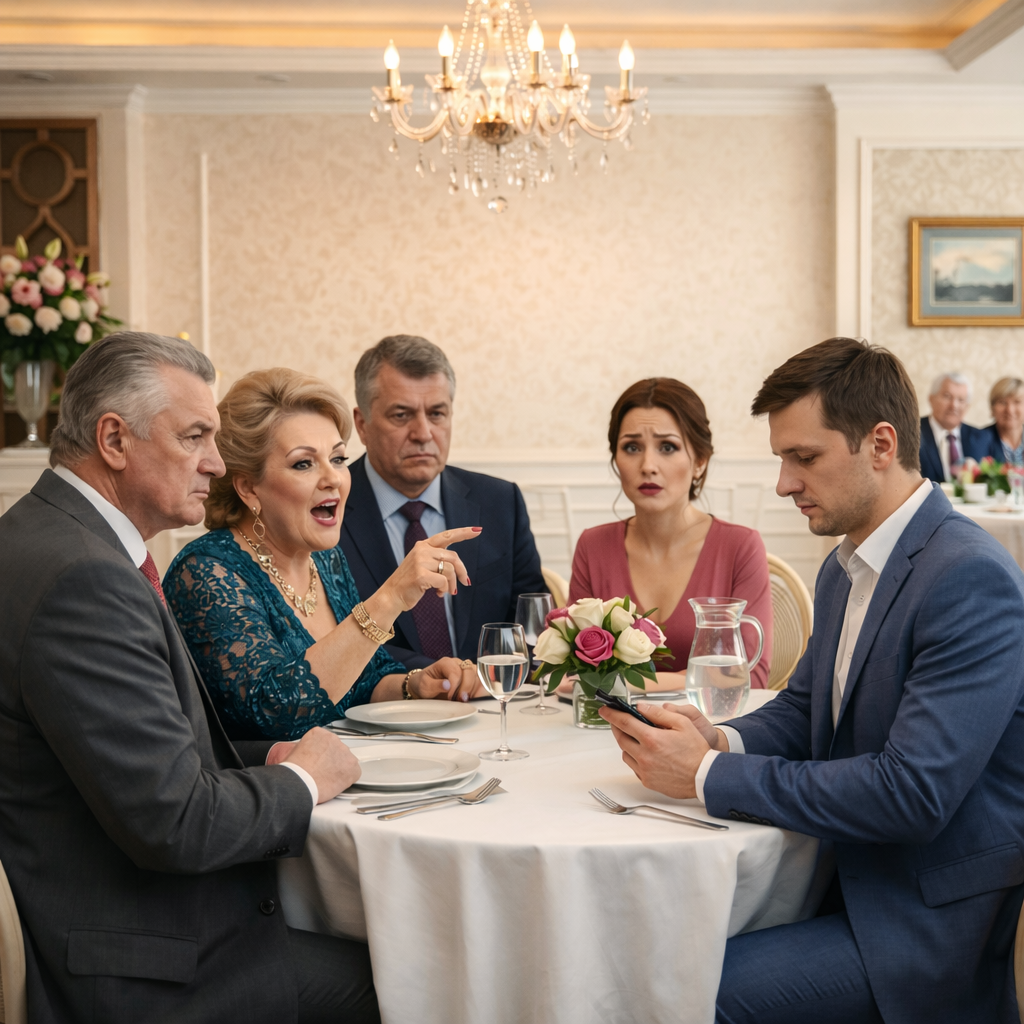 Улыбка сползла с лица матери так резко, словно ее стерли тряпкой. Жанна, сидевшая рядом, подавилась минералкой и зашлась глухим кашлем.