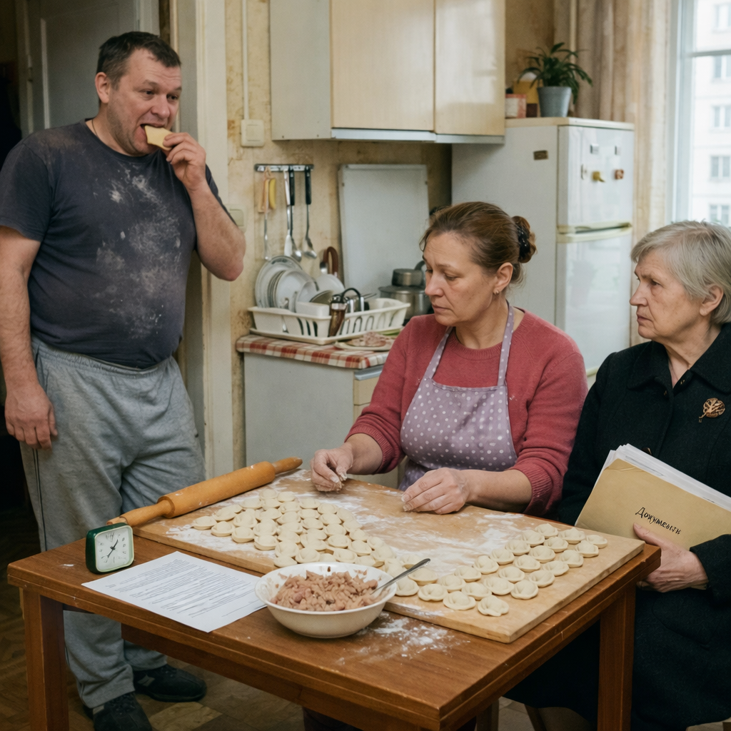 — Повтори, — спокойно попросила Света, аккуратно кладя тесто на стол и вытирая руки о вафельное полотенце. В свои пятьдесят два года она привыкла не делать резких движений. Работа старшим архивариусом в Бюро технической инвентаризации научила ее главному правилу: любой абсурд должен быть задокументирован и осмыслен.