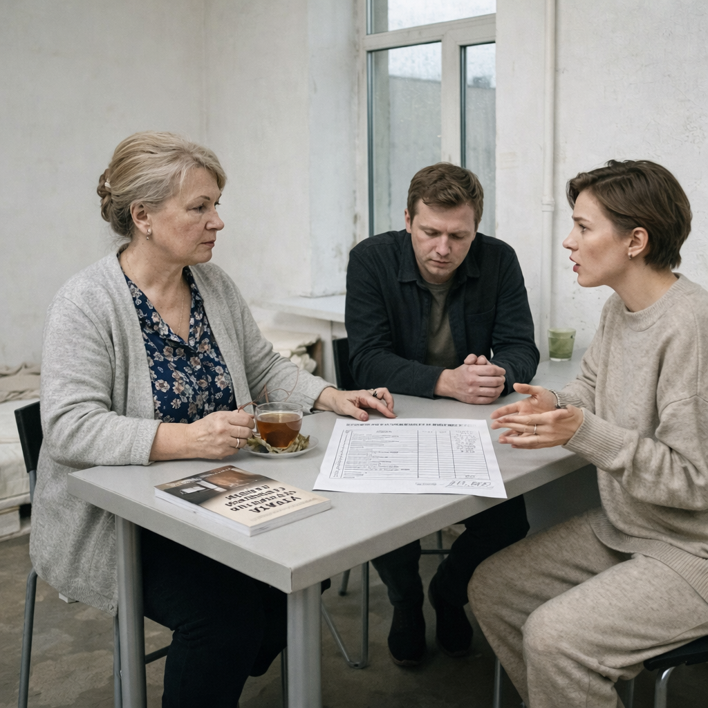 Вечером того же дня в квартире Антонины Васильевны состоялся экстренный семейный совет. Денис, вызванный с работы гневным сообщением матери, приехал бледный и потный. Он еще не до конца понимал масштаб катастрофы, но по интонации родительницы чувствовал — пахнет порохом.