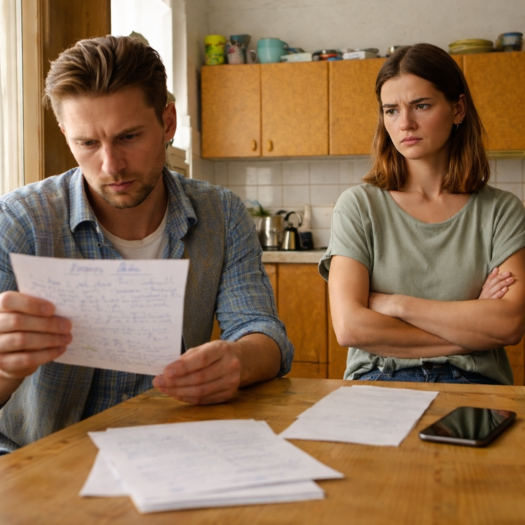 Татьяна попросила Лёшу сесть. Разложила на столе листок — она записала несколько конкретных вещей, потому что знала: без конкретики он снова уйдёт в защиту матери.