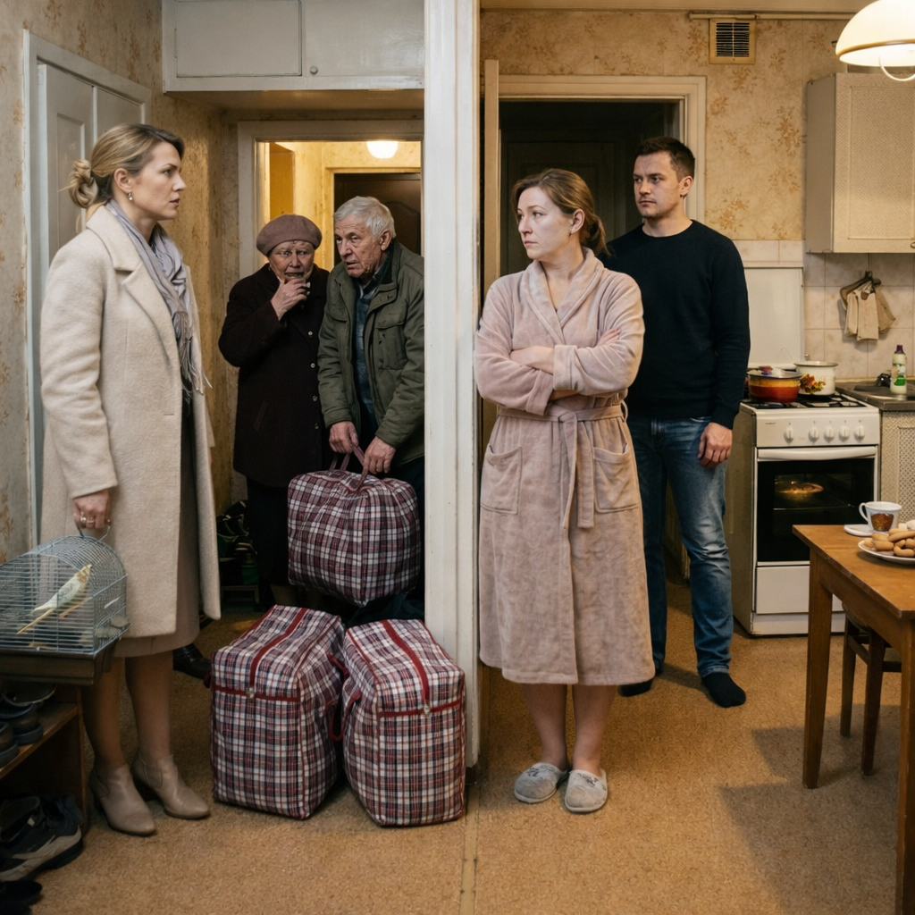 И вот теперь обладатели пожизненного ухода стояли в ее коридоре с клетчатыми баулами.