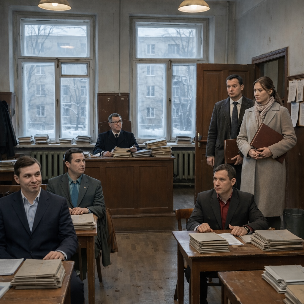 В коридоре люди ждали свои заседания, держали пакеты с документами, термосы, телефоны, усталость.