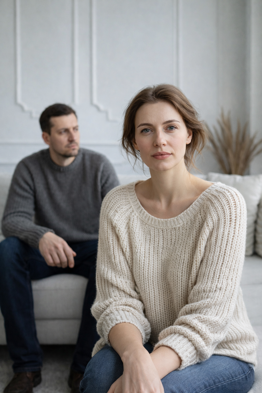 Марина зашла в квартиру. Закрыла дверь на оба замка. Дмитрий стоял в коридоре — он слышал всё.