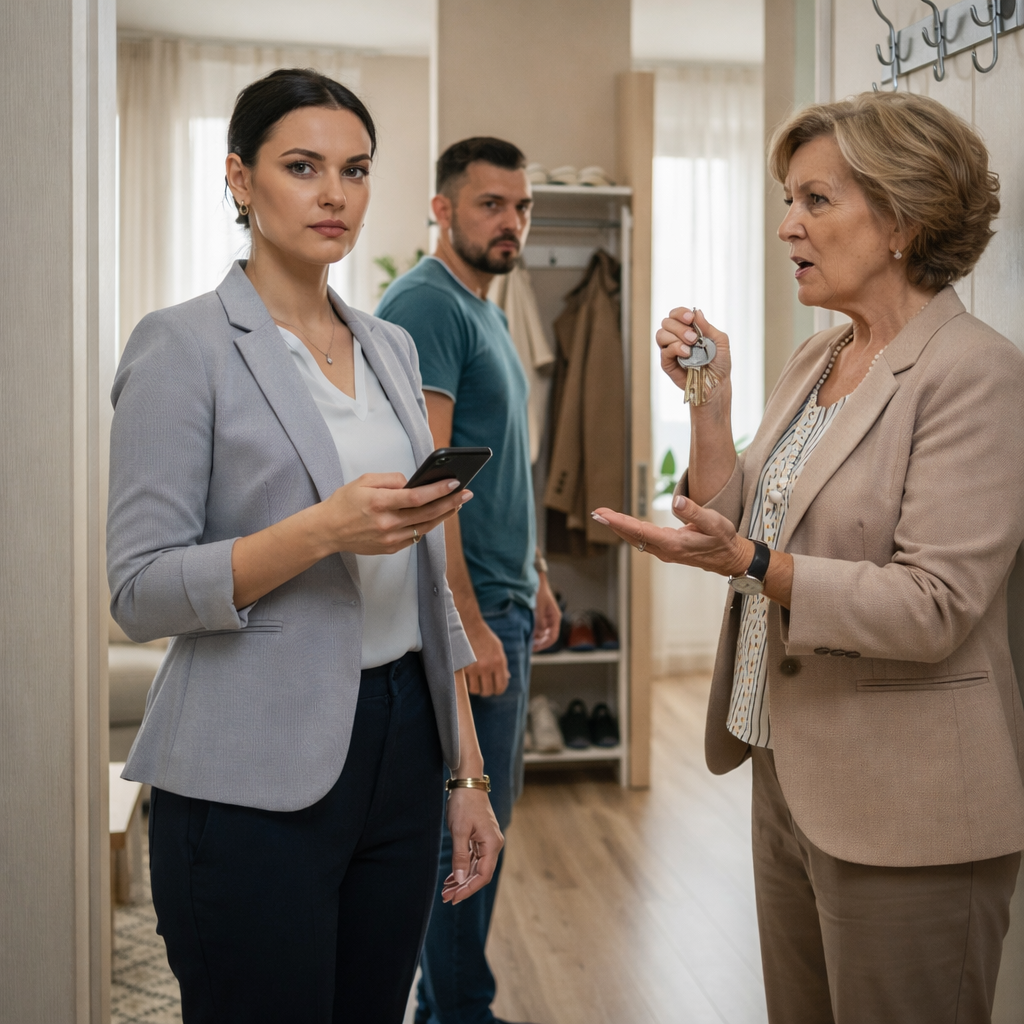 Щёлкнул замок. На пороге стояла Галина Петровна — свекровь, крупная, властная женщина с аккуратно уложенными волосами и поджатыми губами. В руках она держала связку новых ключей и смотрела на невестку сверху вниз, хотя была ниже на полголовы.