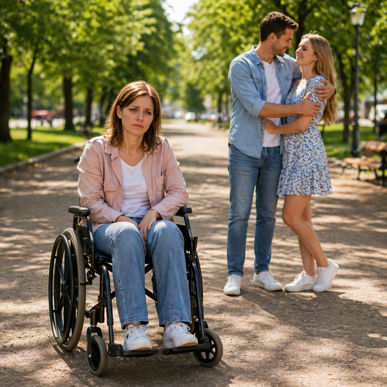 — Я не выбирала эту коляску, — мои пальцы впились в подлокотники. — Ты вёл машину, отвлёкся на телефон. Ты!