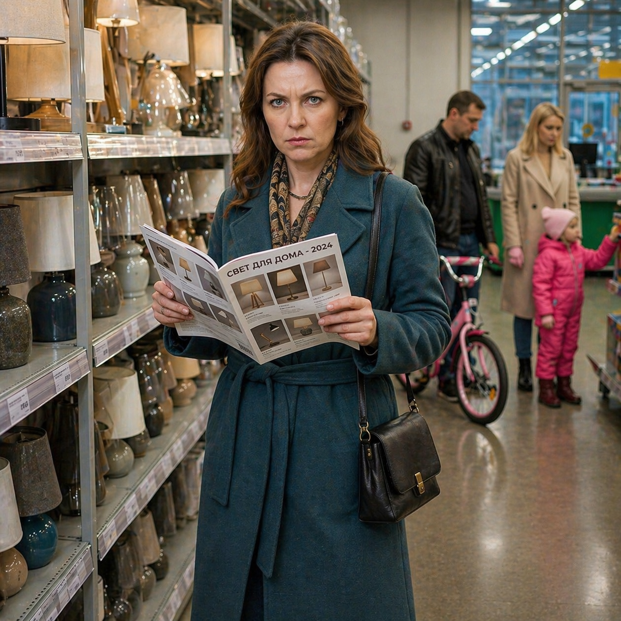 Катя водила пальцем по каталогу со светильниками, но что-то заставило её повернуть голову в другую сторону, и она замерла.