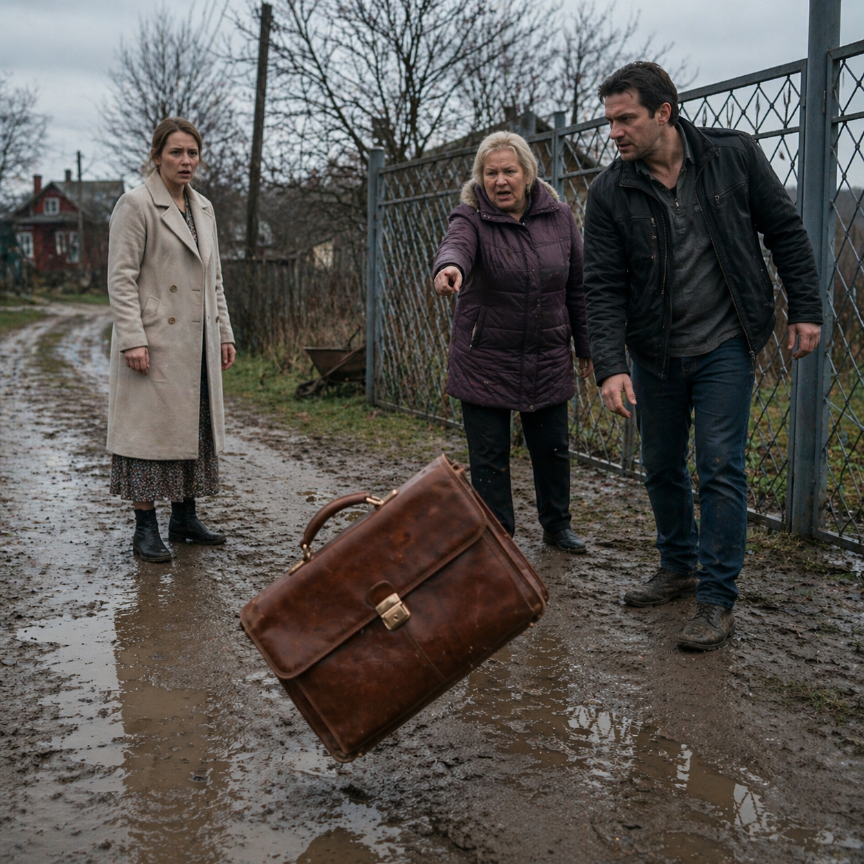 Коричневая кожа неприятно чавкнула, погружаясь в жирную костромскую глину. Я смотрела, как светлая подкладка моей сумки, вывернутая наружу, медленно впитывает грязную воду. Ручка сиротливо болталась на одном креплении — Руслан рванул слишком сильно, когда выставлял меня за калитку.