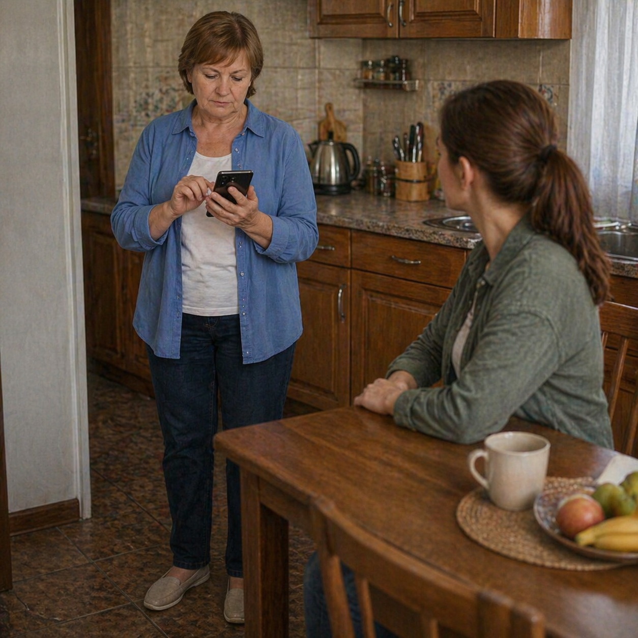 Когда вернулась, телефон лежал чуть в стороне. Галина Петровна нервно вытирала стол, хотя он был чистым.