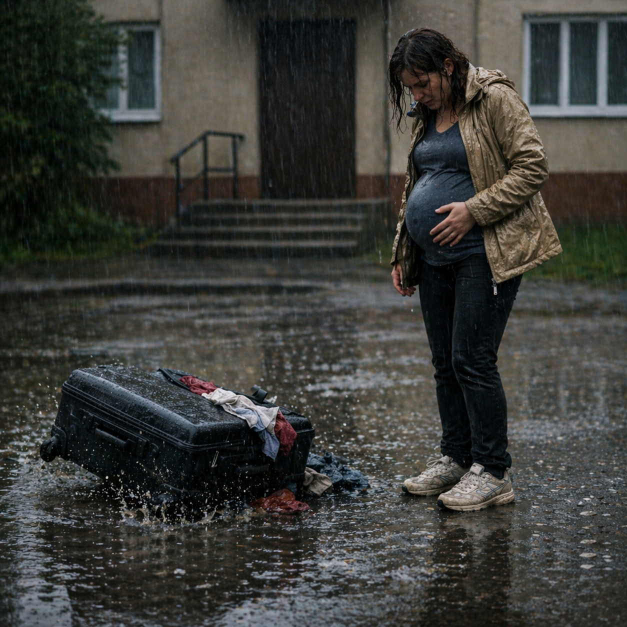 Я стояла под дождём, держась за живот. Восьмой месяц. Ноги опухли так, что кроссовки еле застёгивались. А она — она просто захлопнула дверь.
