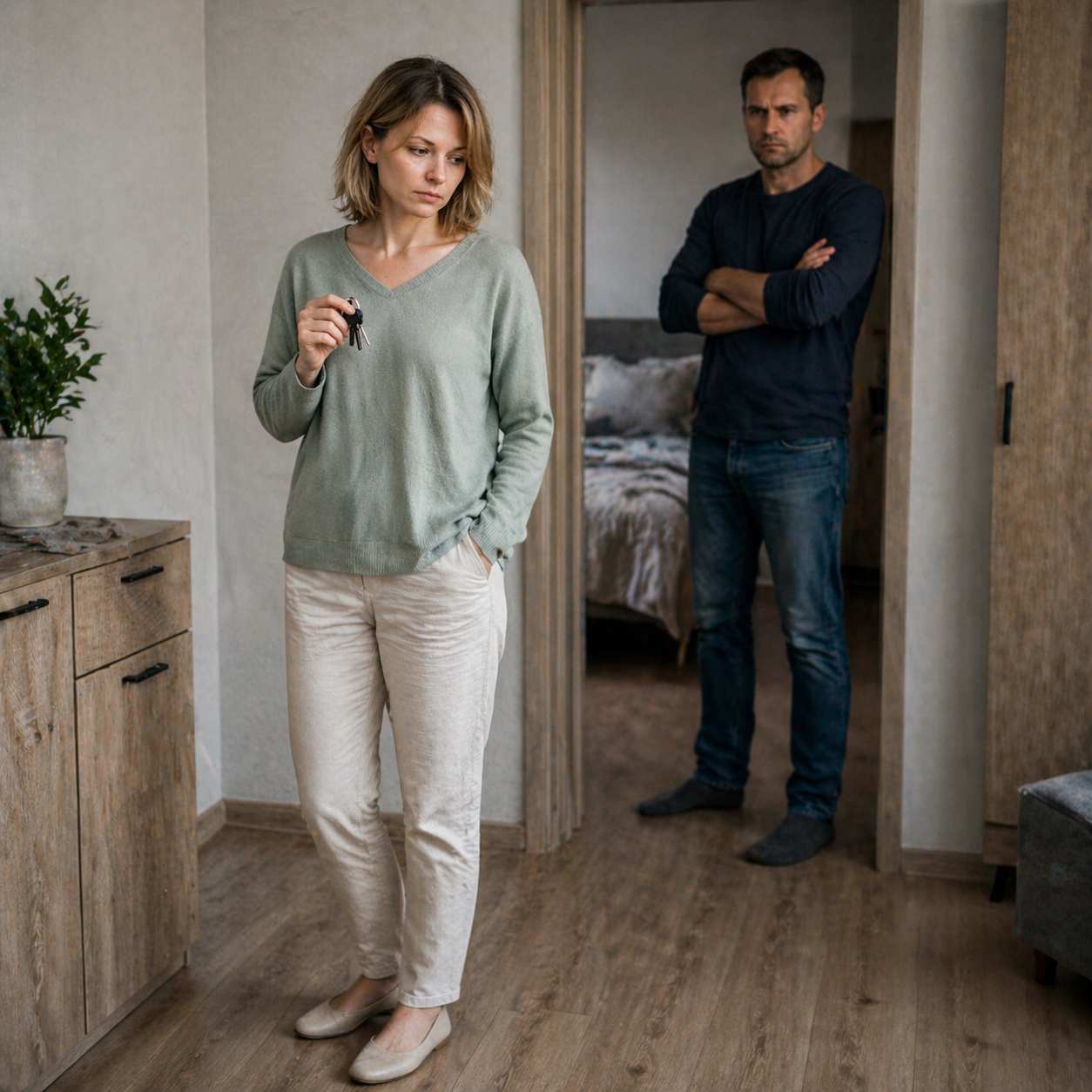 Я замерла с ключами в руках. Сергей стоял в дверях спальни, скрестив руки на груди. Взгляд — как у прокурора.