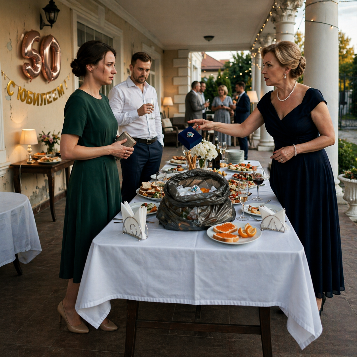 Я стояла на террасе, сжимая в ладони коробочку. Бархат был недорогим, жестким, но внутри лежала вещь, на которую я откладывала три месяца. Настоящее серебро, старая работа, крошечная бирюза цвета выцветшего неба над Тагилом. Мой талисман. Я купила её себе на первую премию в банке, когда закрыла самый сложный кейс по взысканию. Потом решила — пусть у неё будет. Юбилей всё-таки, шестьдесят лет.