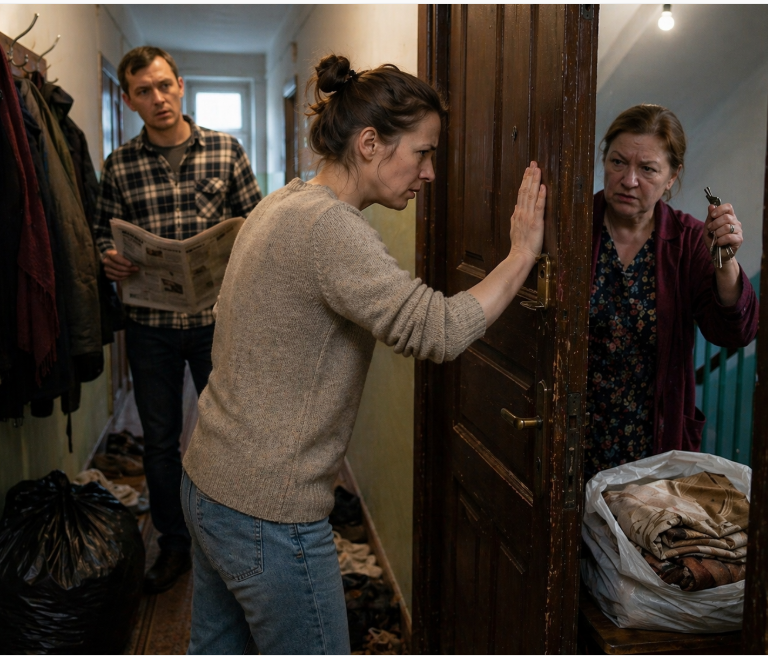 Металл коснулся металла. Я услышала, как ключ вошел в скважину. Раз. Два. Тишина. Снова попытка. Ключ входил, но не поворачивался. Наступила секундная пауза — свекровь явно не понимала, что происходит. Может, замок заклинило? Может, она перепутала ключи?
