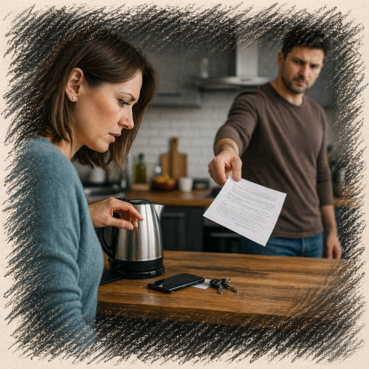 Стою на кухне, рука замирает над чайником. Муж небрежно бросает на стол какую-то бумагу.