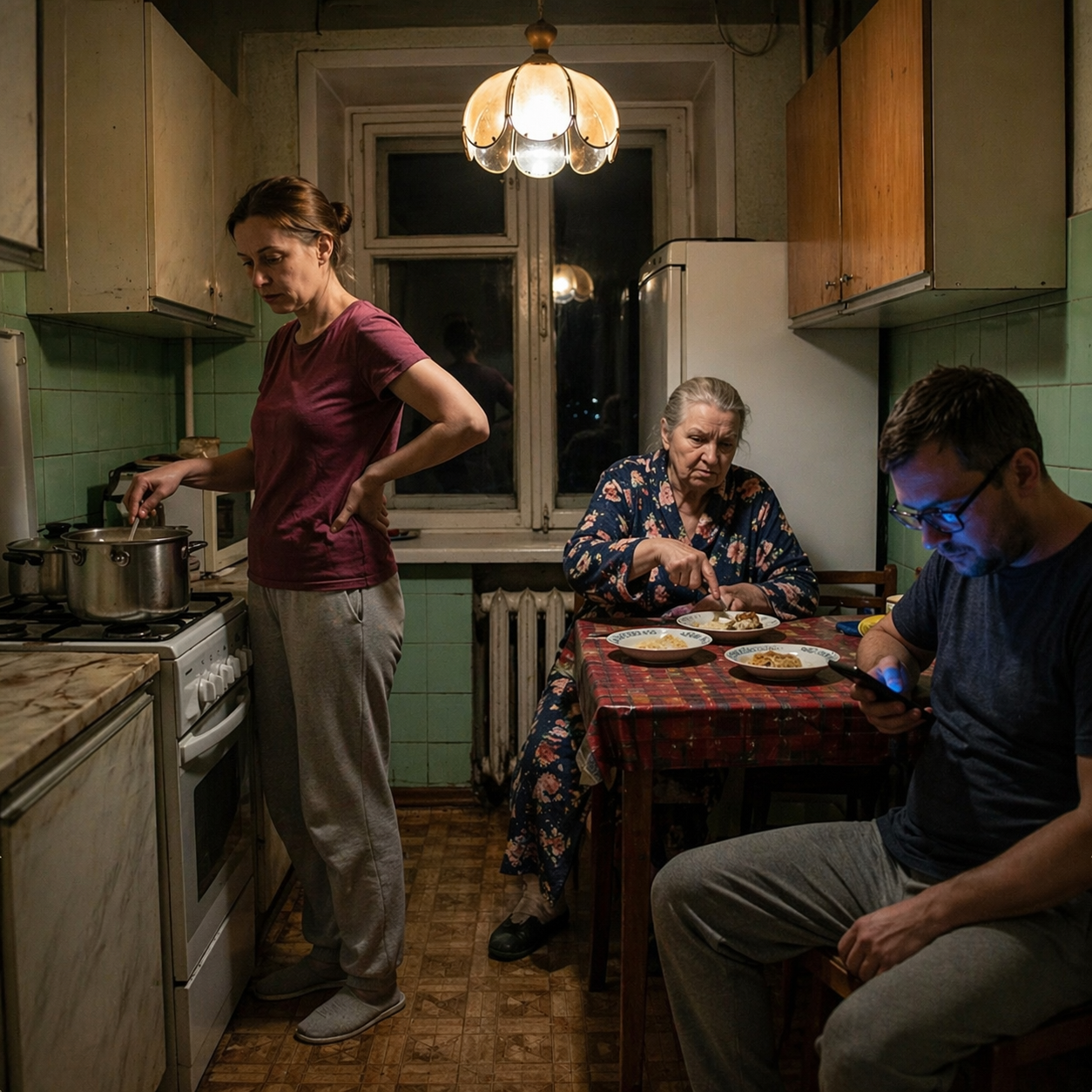 — Опять этот гуляш? — вздохнула Людмила Петровна, отодвигая тарелку на сантиметр. Её седые волосы, коротко подстриженные, блестели под светом люстры. Мизинец на правой руке был слегка подогнут внутрь, как будто стыдился своей кривизны. — Я же говорила, мне нельзя острое. Давление.