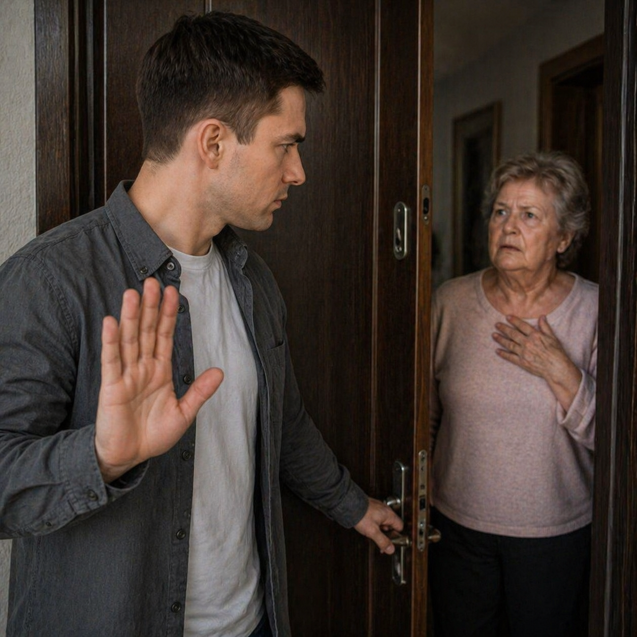 Сергей вышел из кухни и направился в гостиную. Теща бежала за ним, пытаясь схватить за рукав, но он отмахнулся от неё.