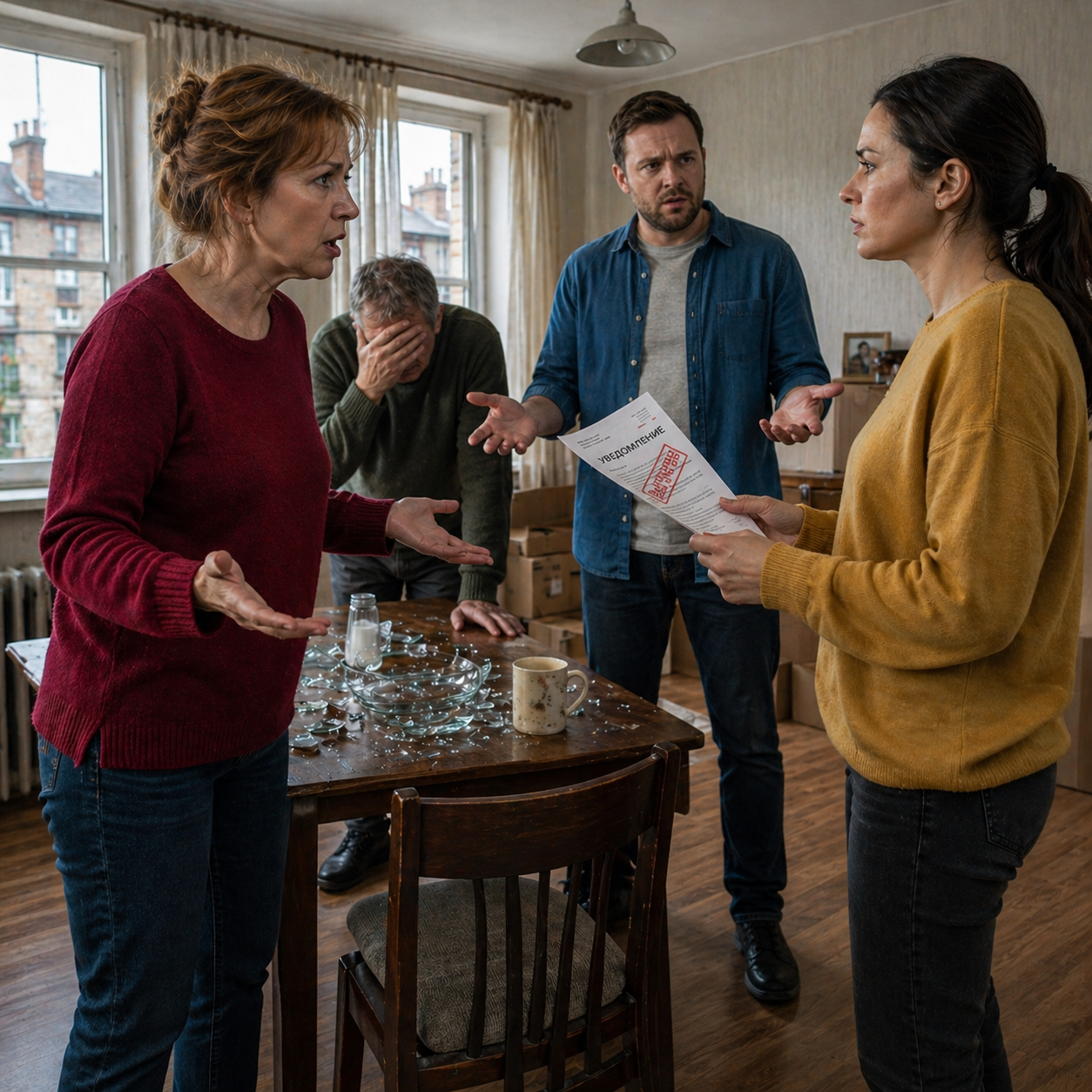 Осколки стакана рассыпались по кухонному ламинату, напоминая крошечные бриллианты в лучах закатного солнца. Маргарита Владимировна замерла с открытым ртом, её рука всё ещё сжимала пустоту. Виктор Петрович тяжело дышал в дверном проеме, его лицо приобрело пугающий багровый оттенок.